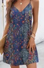 Be the first to review “Bohemian Printed V Neck Spaghetti Strap Backless A-Line Dress, Perfect For Music Festivals” Cancel reply